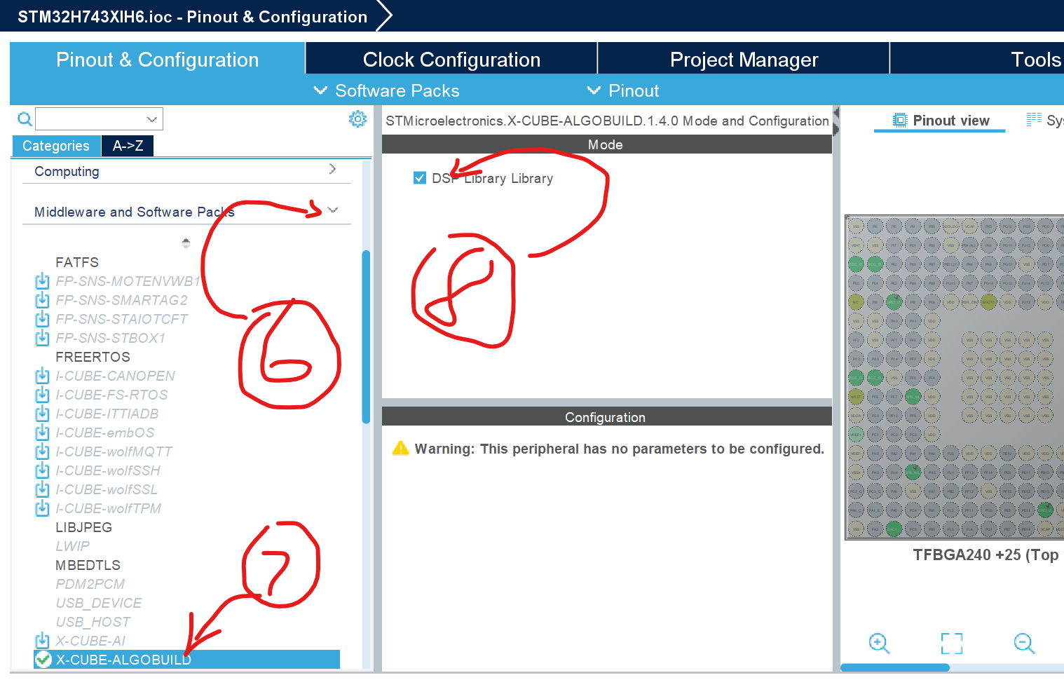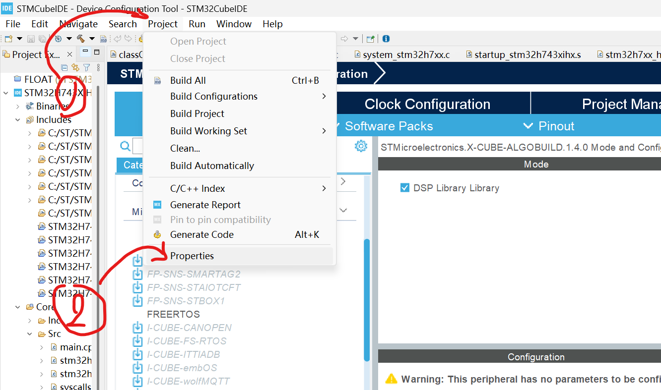 我的芯片型号是STM32H743XIH6,编程环境为STM32CubeIDE1.19.0,DSP配置步骤如下: