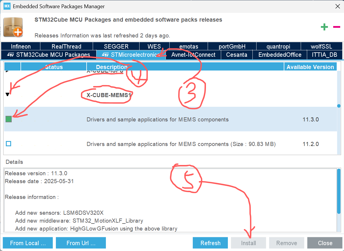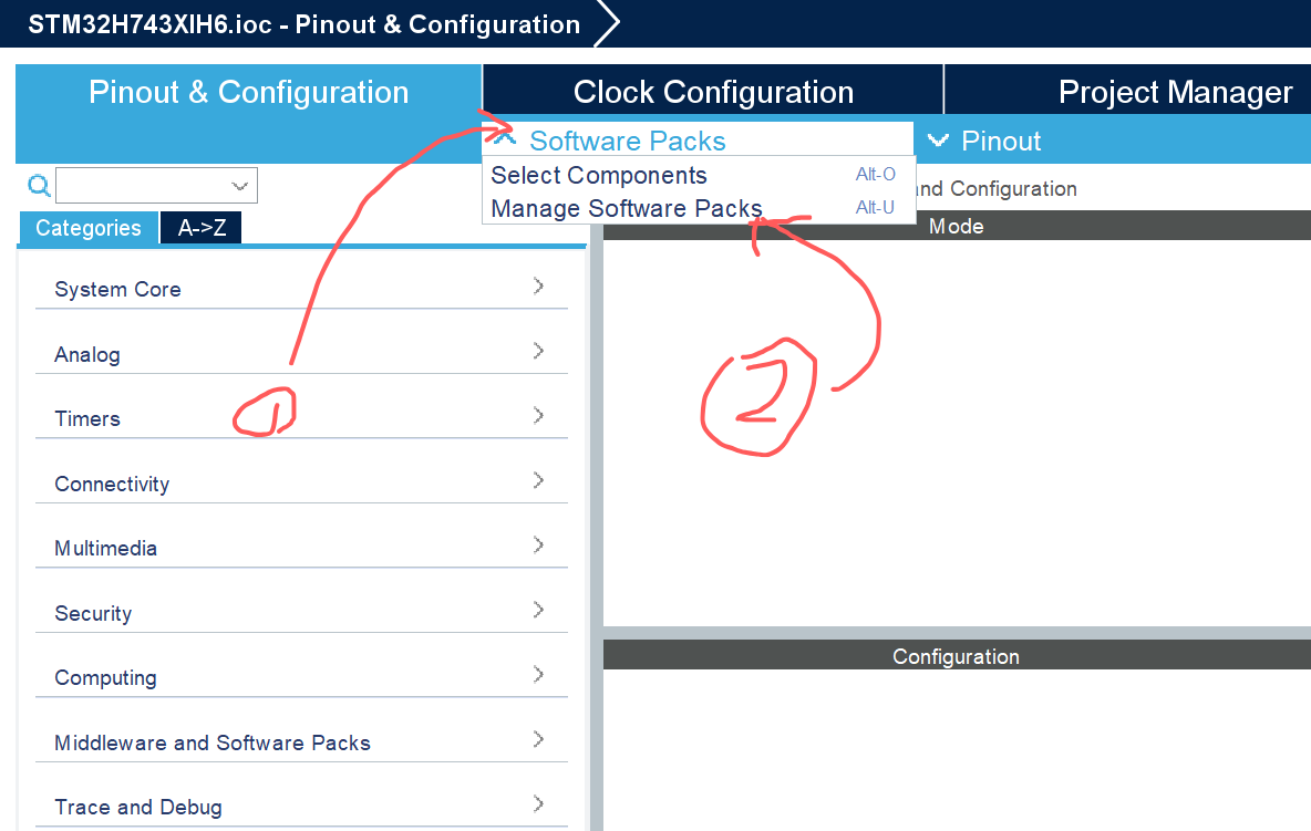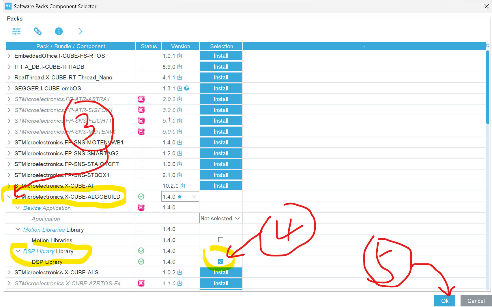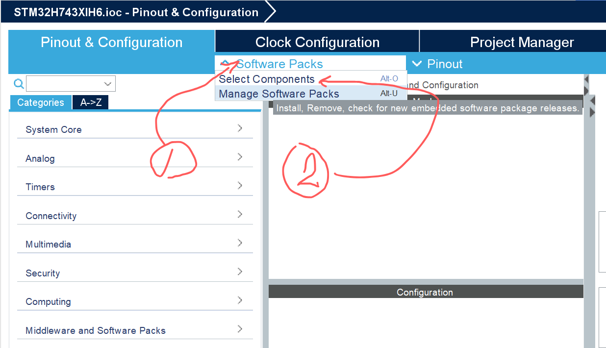 1、进入MX配置界面,安装 X-CUBE-MEMS1和X-CUBE-ALGOBUILDP 这两个组件。