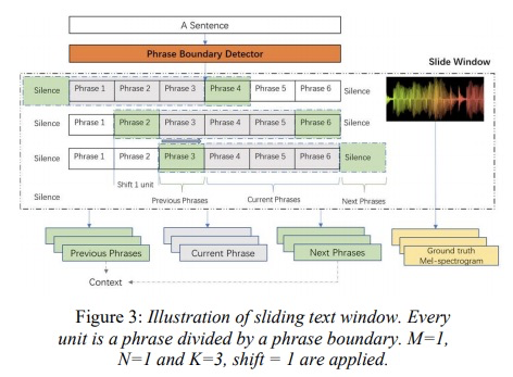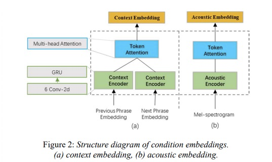 推理需要依赖上一时刻的输出,因此推理速度十分缓慢。本文针对句子级别(sentence-level)系统存在的问题,提出短语级别(phrase-level)的合成系统,使其可以并发合成,从而提高推理速度。为了解决使用短语级别带来的韵律发生变化和音色变换,本文又添加acousic embedding和context embedding作为taoctorn 2的条件特征,从而使其合成的质量跟句子级别保持一致。