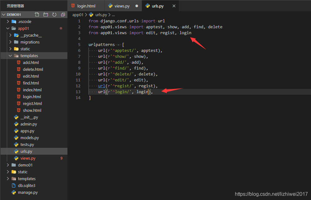 3)修改urls.py文件