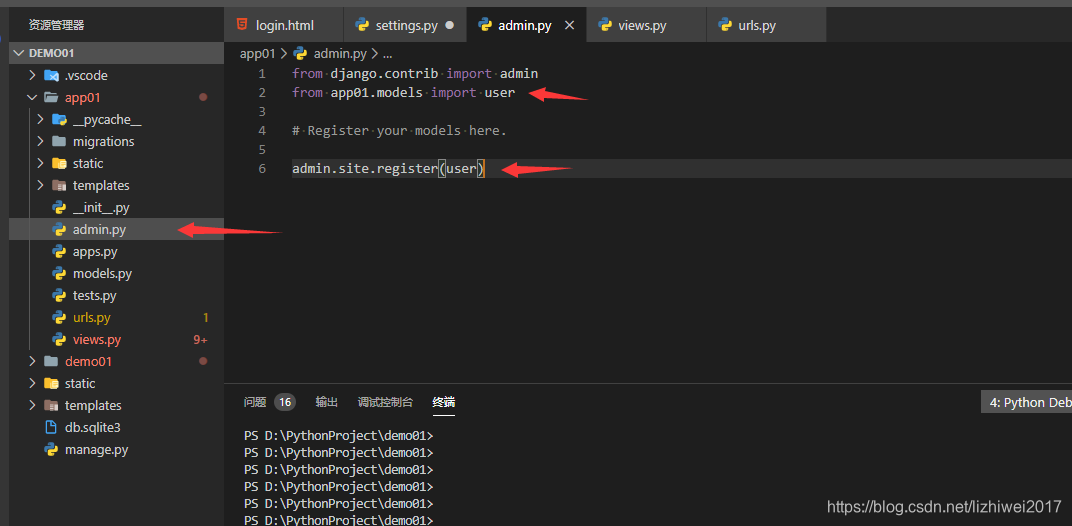 4)运行项目输入网址: http://127.0.0.1:8080/admin/