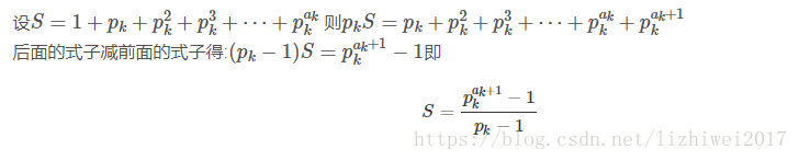 ans = (pow(prime[i], cnt + 1) - 1) / (prime[i] - 1) * ans;