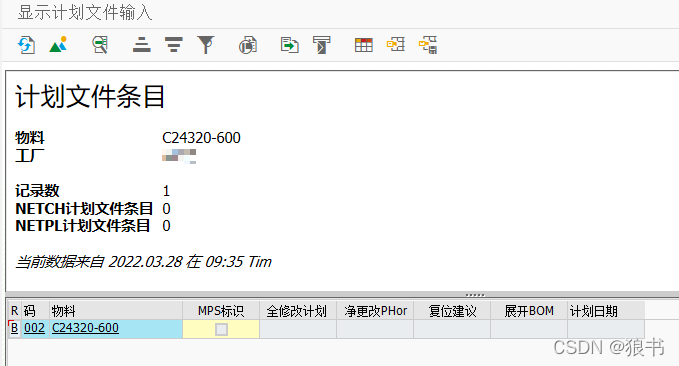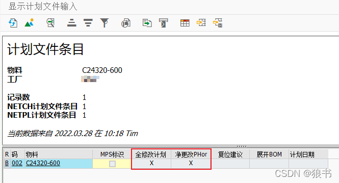 有理论支持,也做了简单的测试。找到某个物料,通过MD21观察其当前计划文件条目如下图所示;