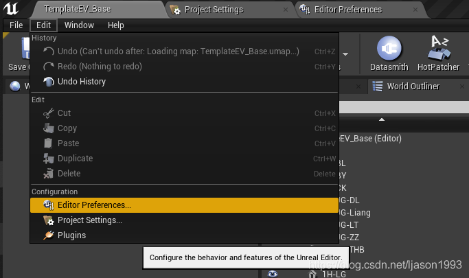2.打开Editor Preferences 编辑器偏好 编辑器设置