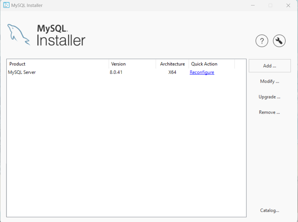 这个页面是显示本机的MySQL,在右侧可以进行增删改查,我们要重装数据库,点击Remove