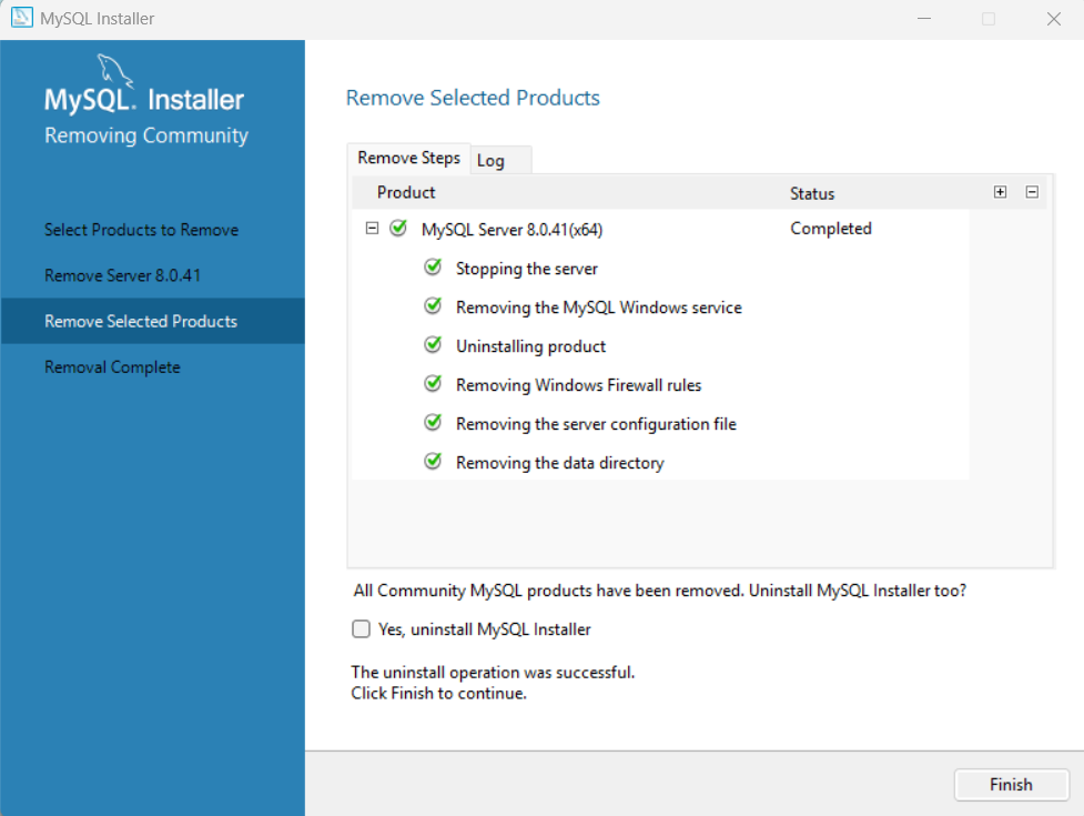 下面是完成删除,点击Finish。