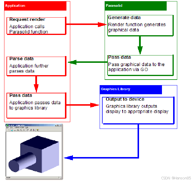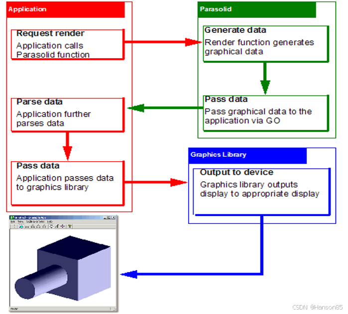 - 在需要使用PK中的某个渲染函数时创建图形显示数据时,Parasolid会调用GO相关的函数。