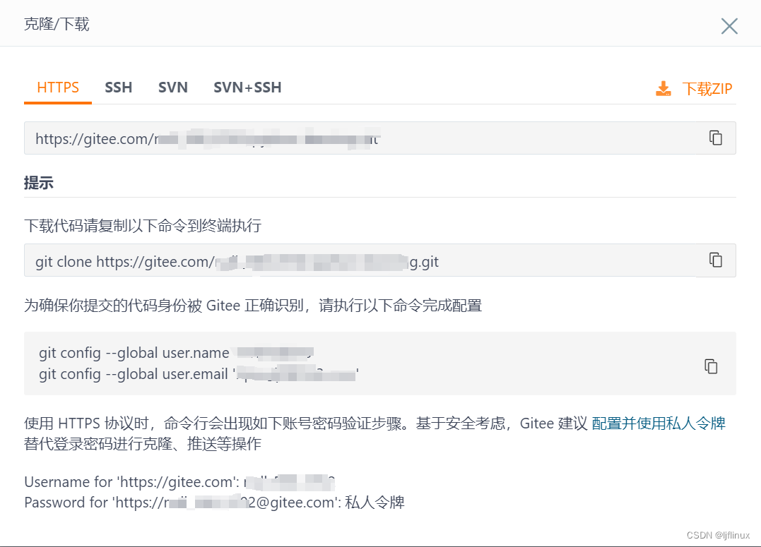 # 设置用户,从GitEE的页面获取的命令