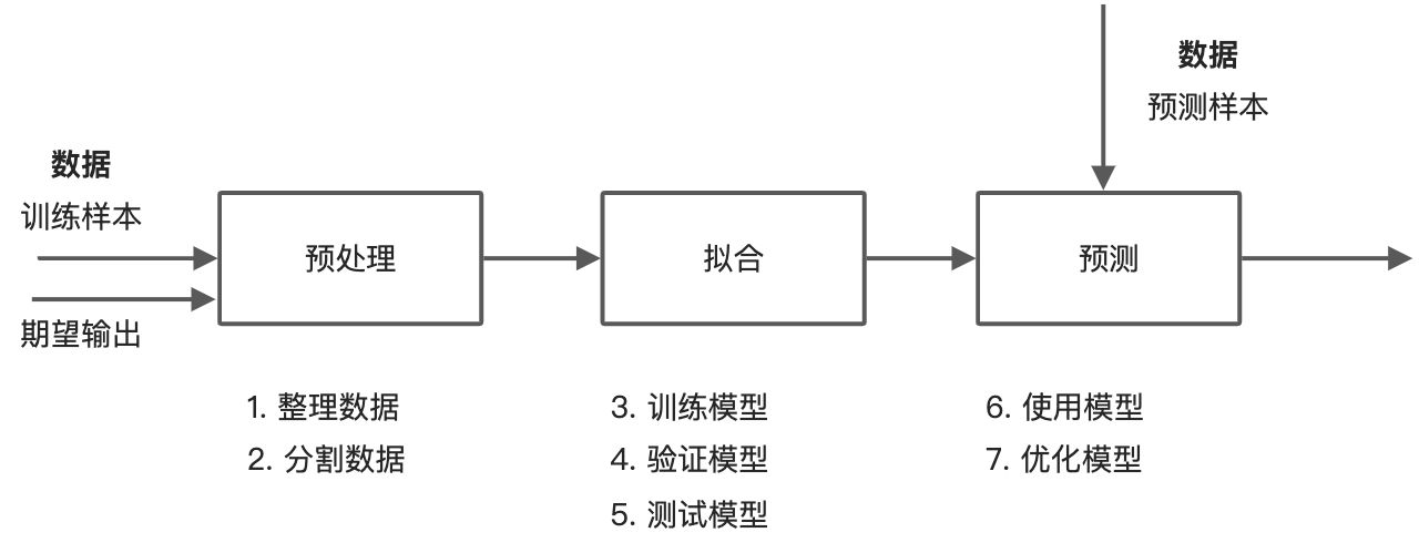- 选择、训练和测试模型——使用处理后的样本数据,针对特定模型进行拟合、训练