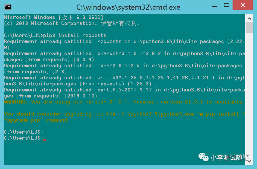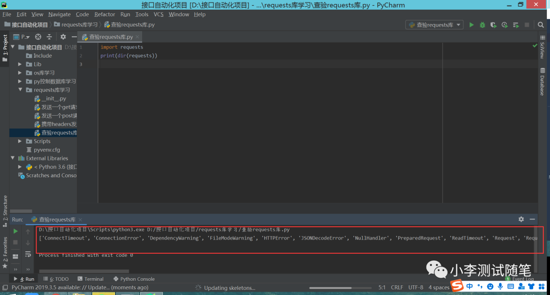 通过命令行执行(或通PyCharm执行):pip3 install requests