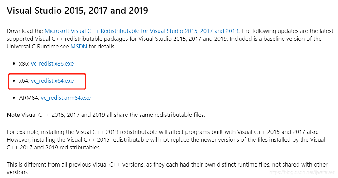 官方下载地址:https://support.microsoft.com/en-us/help/2977003/the-latest-supported-visual-c-downloads