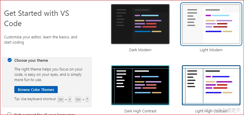 安装完成,选择界面风格,我喜欢白亮的,选择了Light Modern风格