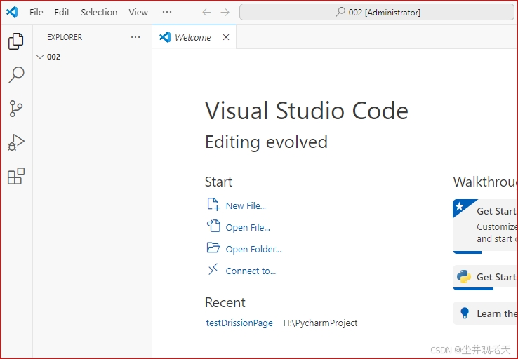 打开VSCode,运行起来后,直接菜单打开创建的目录:
