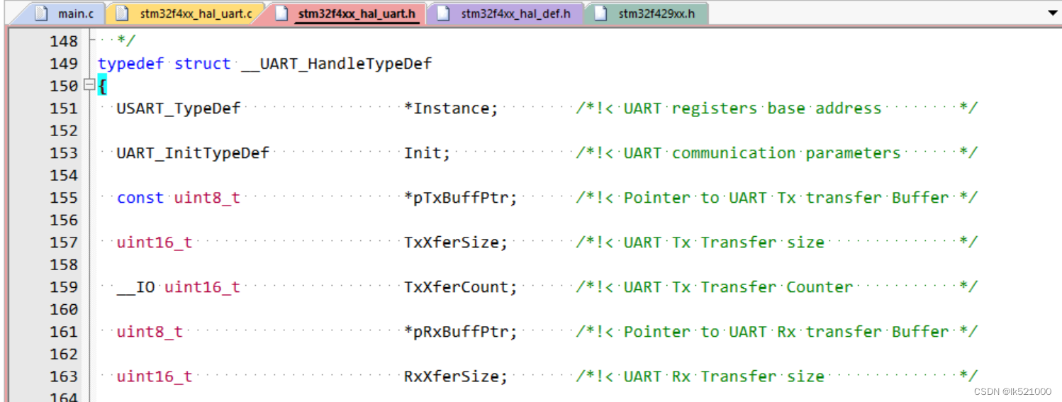 形参是串口的句柄,UART_HandleTypedef的结构体类型,其定义如下图: