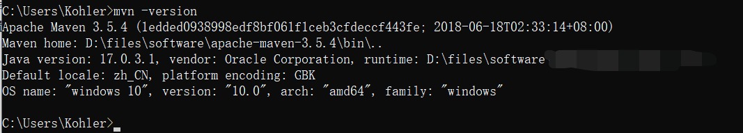 然后win+R运行cmd,输入mvn -version,如图所示则配置成功