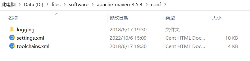 在路径D:\files\software\apache-maven-3.5.4\conf下找到settings.xml文件(用记事本打开)