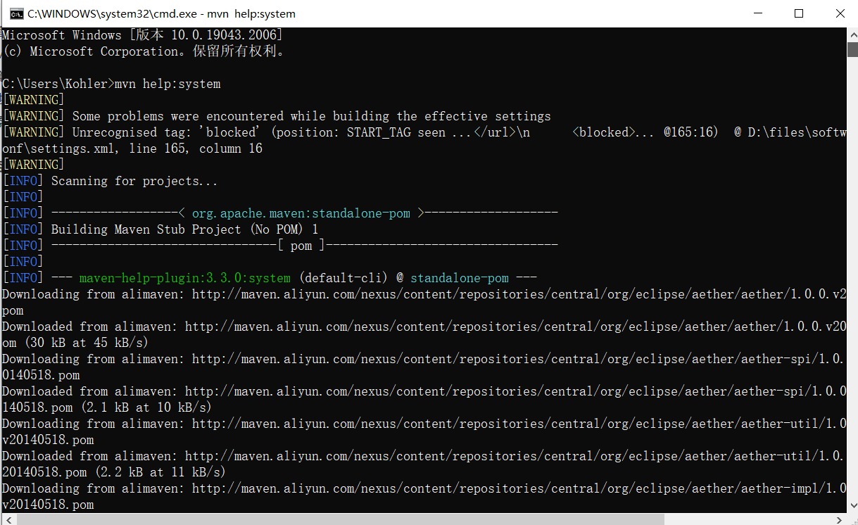 测试,配置成功则本地仓库(D:\files\software\apache-maven-3.5.4\repository)中会出现一些文件