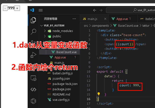 这种写法,简单类型数据是非响应式的,也就是数据不会随时变化