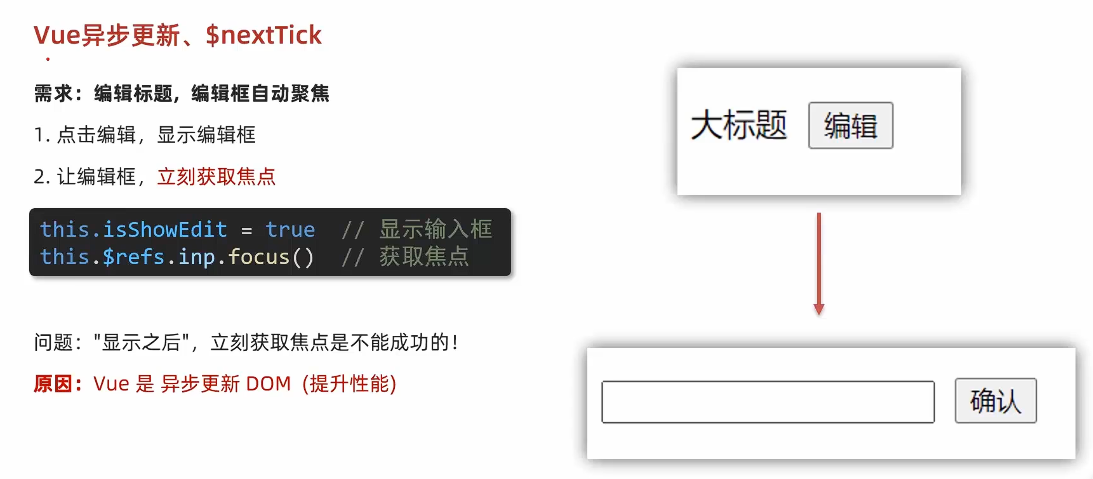 // 2.让文本框聚焦 (会等dom更新完之后 立马执行nextTick中的回调函数)