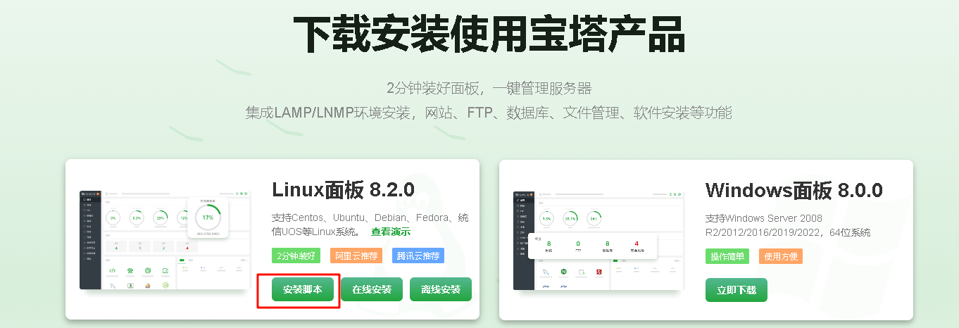 宝塔面板 - 简单好用的Linux/Windows服务器运维管理面板 (bt.cn)