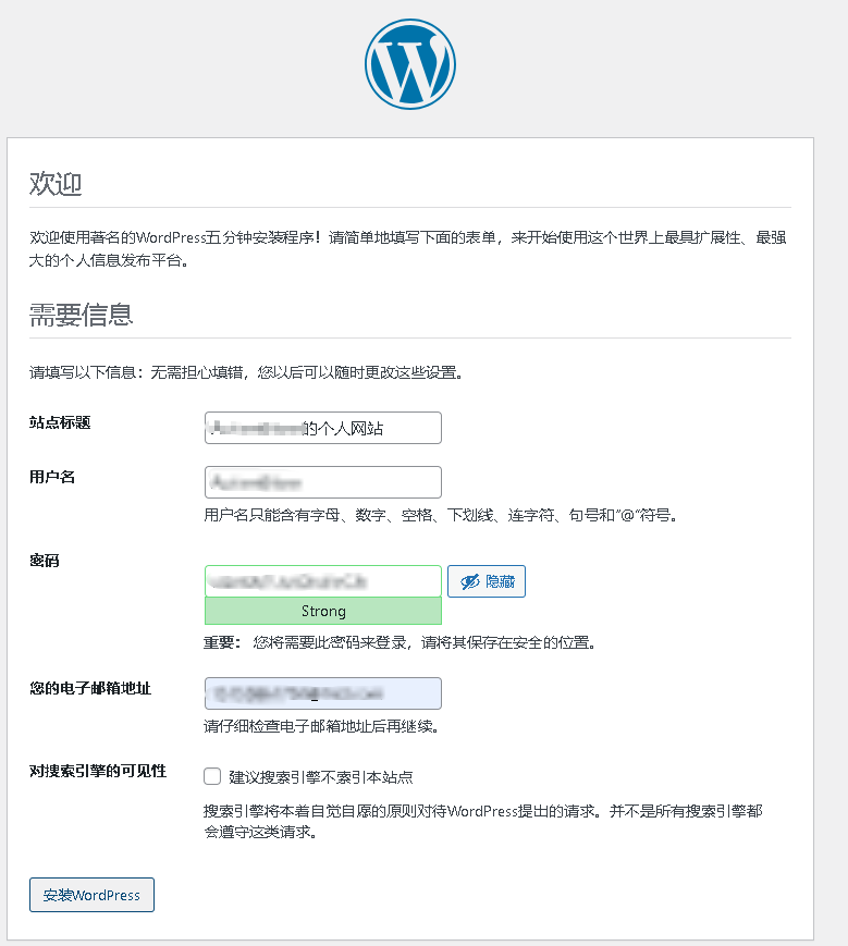 浏览器输入 wordpress部署的访问站点地址