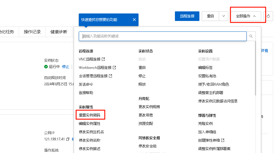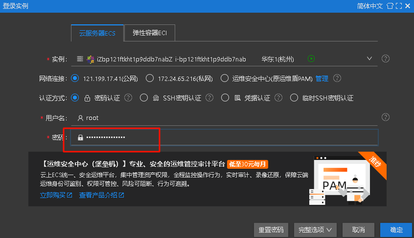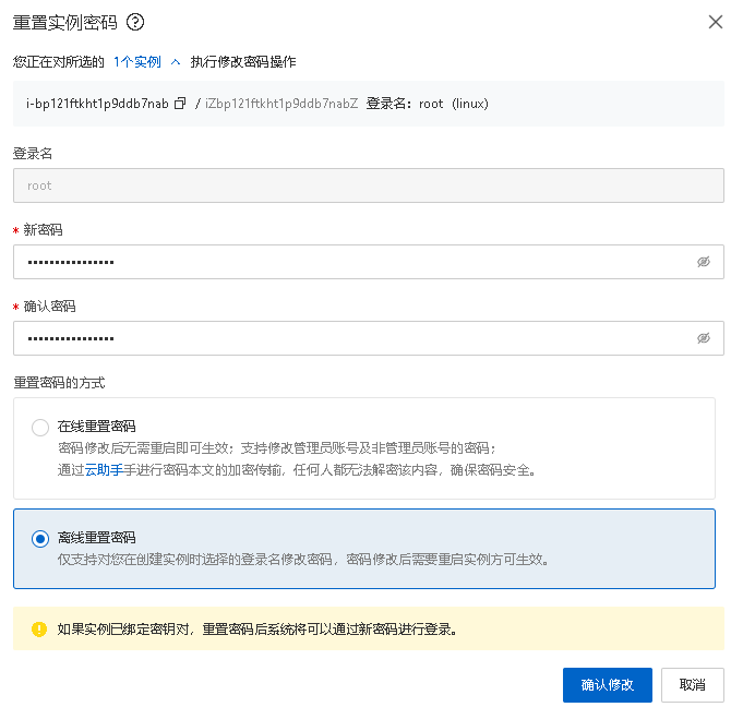 重置实例密码