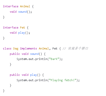 | 用途 | 提供部分实现,共享代码 | 指定行为,不关心实现 |