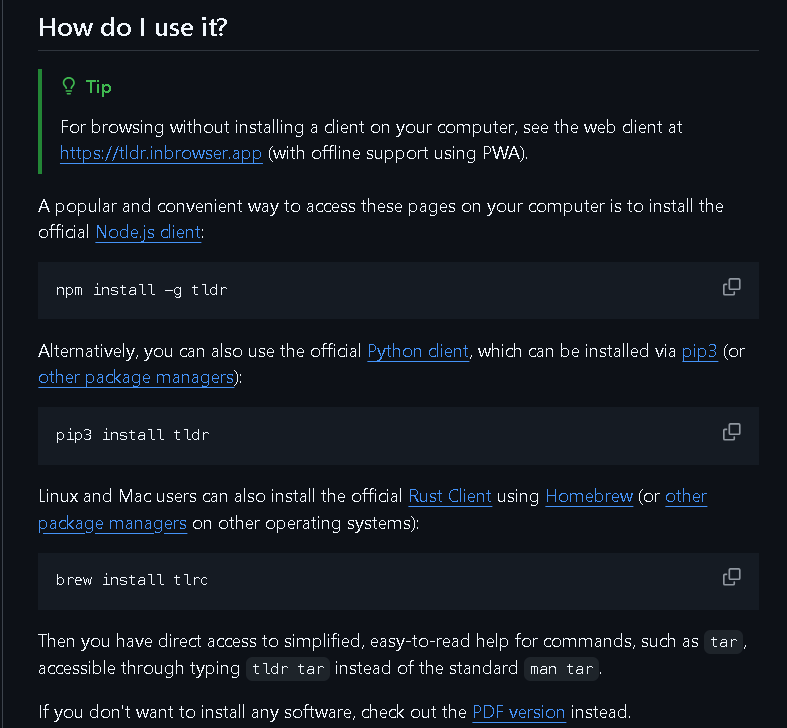 GitHub - tldr-pages/tldr: 📚 Collaborative cheatsheets for console commands