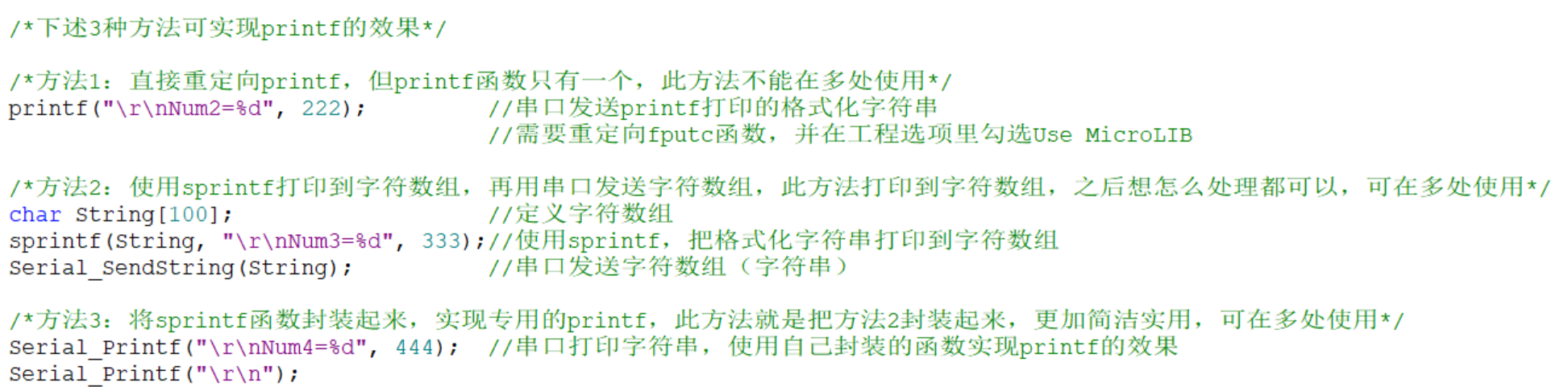 如果多个串口都想用printf,用sprintf,可以把格式化字符输出到一个字符串里