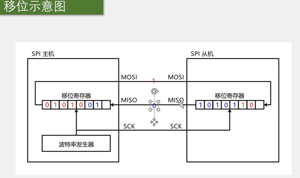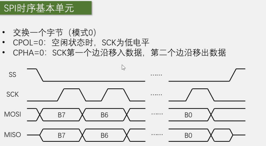 上升沿之后,下一个边沿就是下降沿,在下降沿时,主机和从机内,都会进行数据采样输入