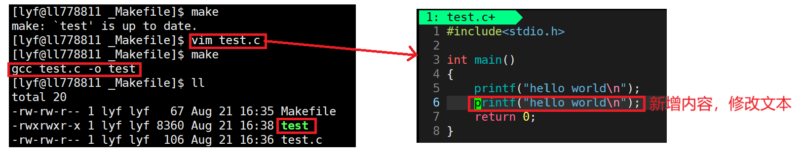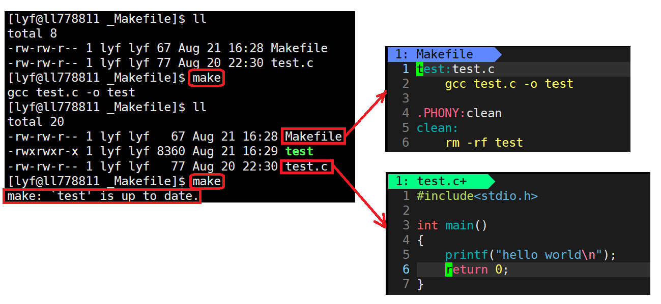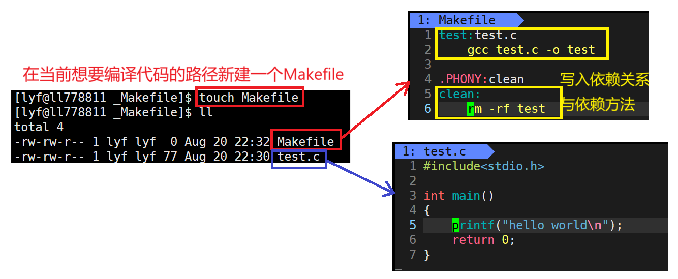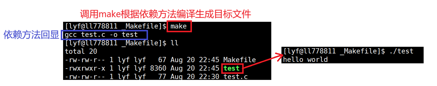 - 上面的依赖方法等价于 gcc test.c -o test 命令