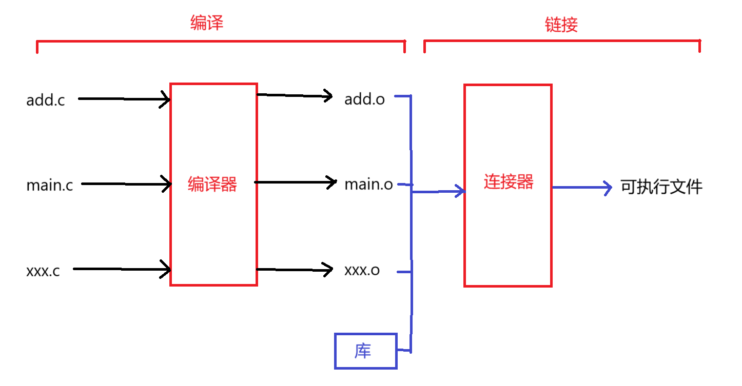 现实中的项目通常包含多个 .c 文件和 .h 文件。我们需要先将每个 .c 文件编译成 .o 目标文件,最后再将所有 .o 文件链接成最终的可执行文件