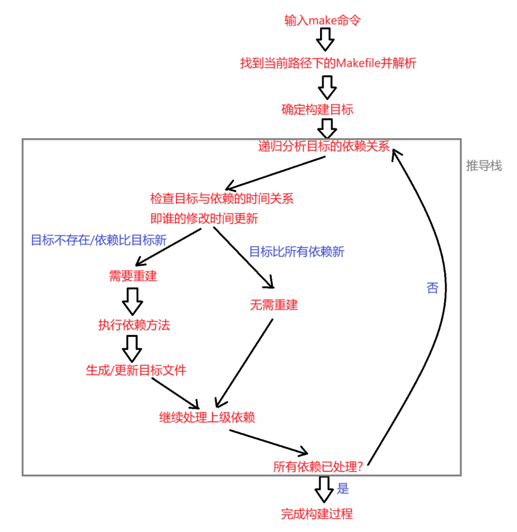 make后面如果不跟目标名,默认只会按顺序推导第一个依赖关系对应的推导链