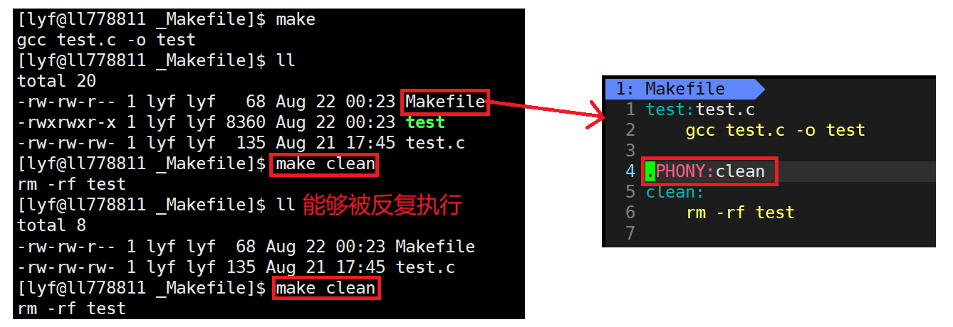 所以我们通常会用.PHONY用来修饰clean,让make clean总是能够被执行,从而能有效地进行清理工程