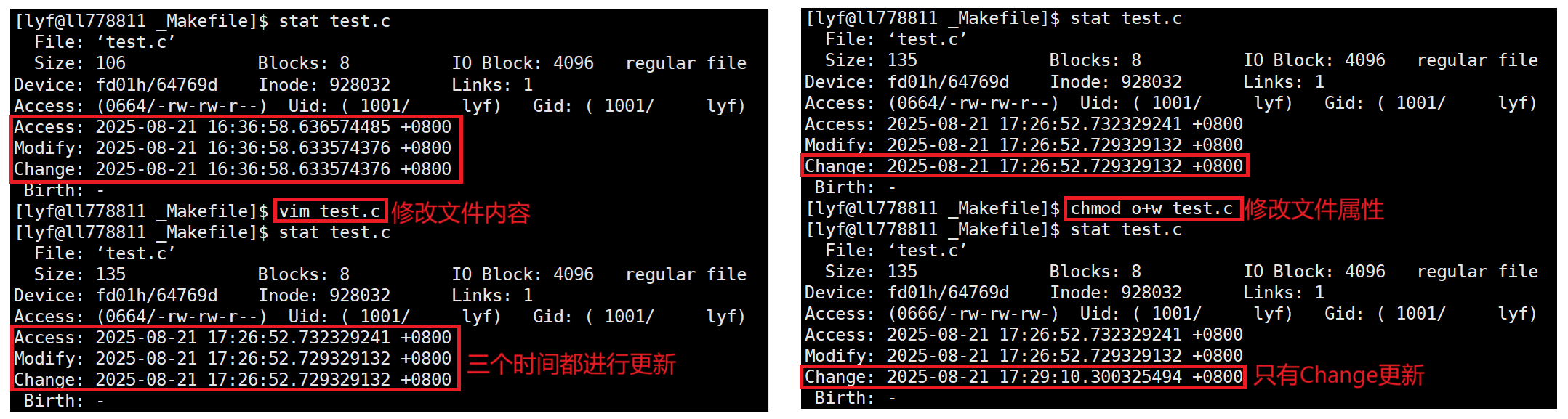 stat也属于访问文件,但Acess为什么没有更新?这是因为对文件的各种操作,都会导致Access时间改变,从而增加访问磁盘的次数,导致OS整体效率降低,所以在现在的Linux中,对Access的更新策略进行了修改,维护了一个计数器,会根据Modify和Access的更新达到一定次数的时候,才会更新Access,以此来提高系统的运行效率