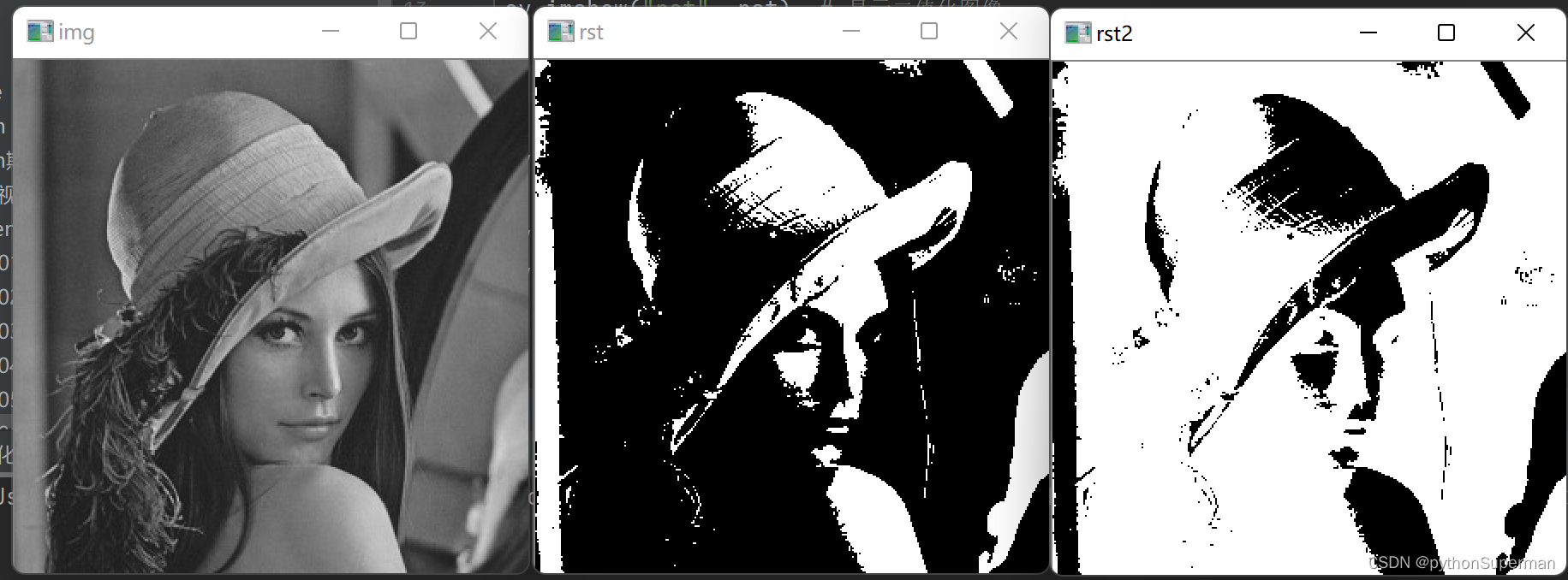 cv.imshow("rst2", rst2) # 显示反二值化图像