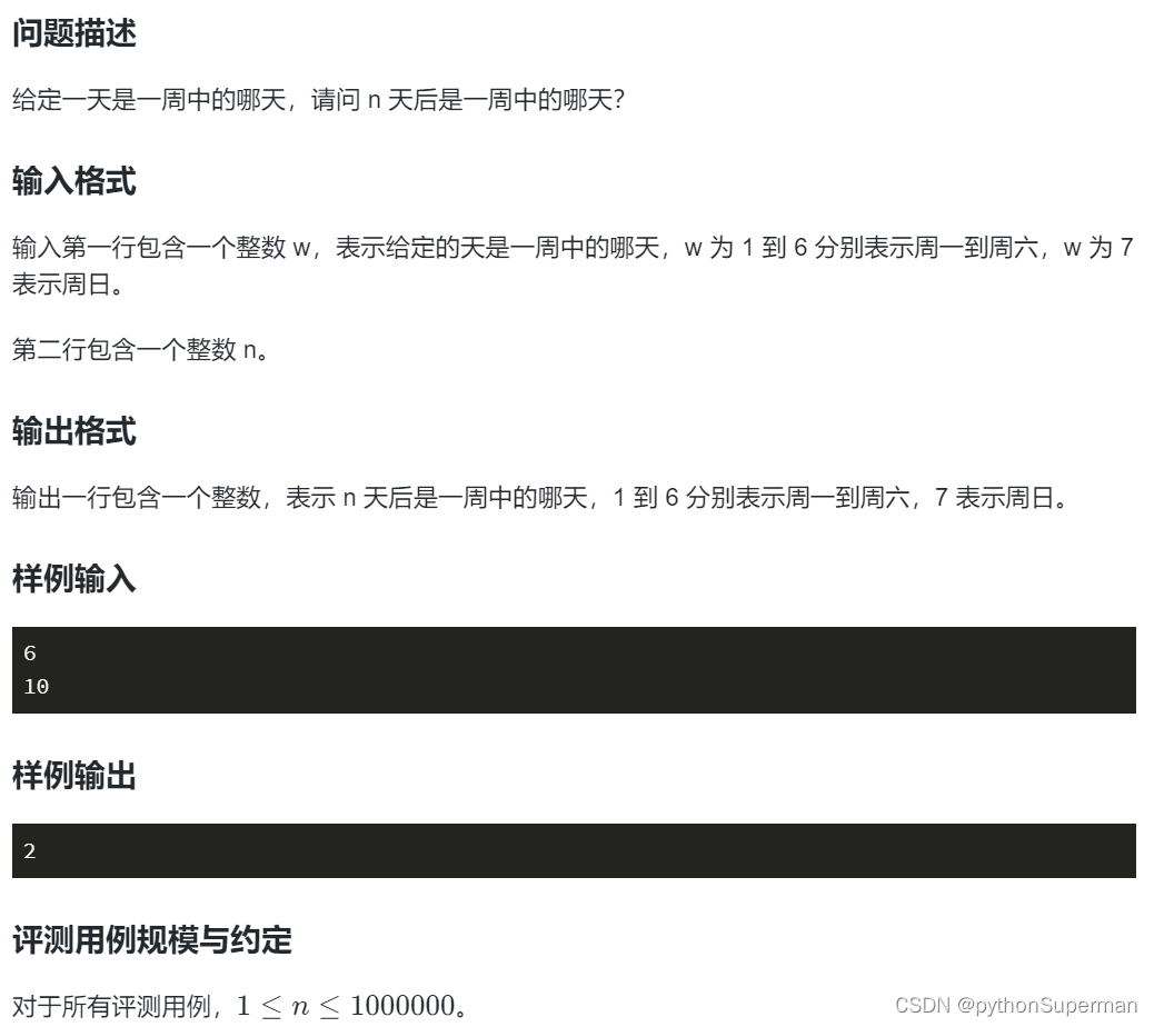 当起始天加间隔的天数的结果等于7的倍数的时候,应该直接等于7,而不是像其他书一样去与7求余。