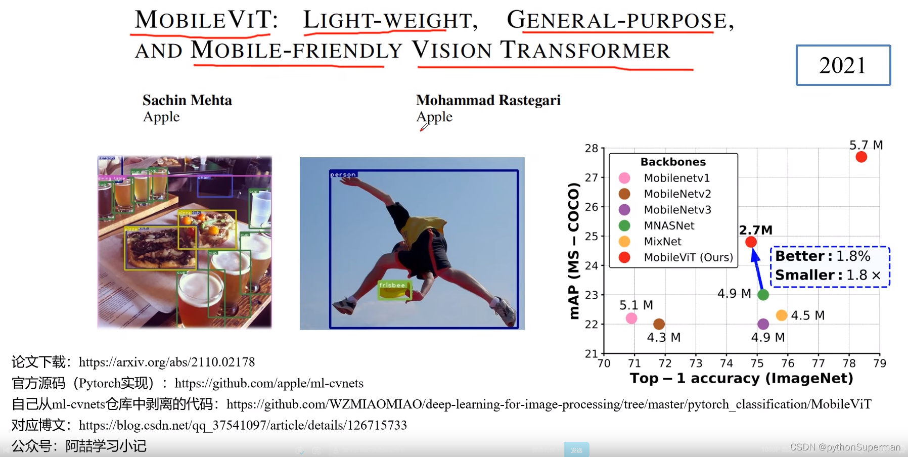 轻量级、通用的、对移动端友好的vision transformer模型。