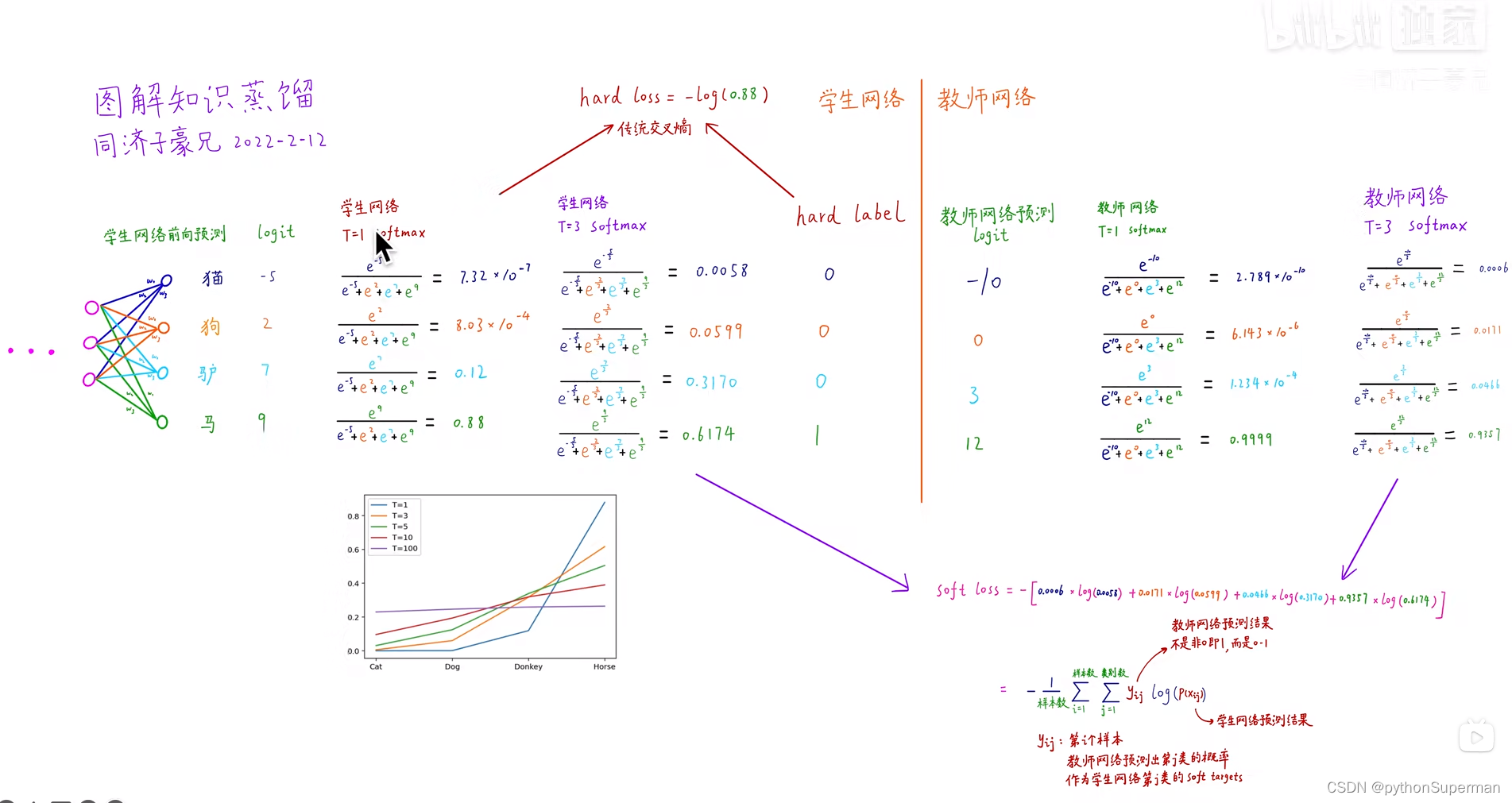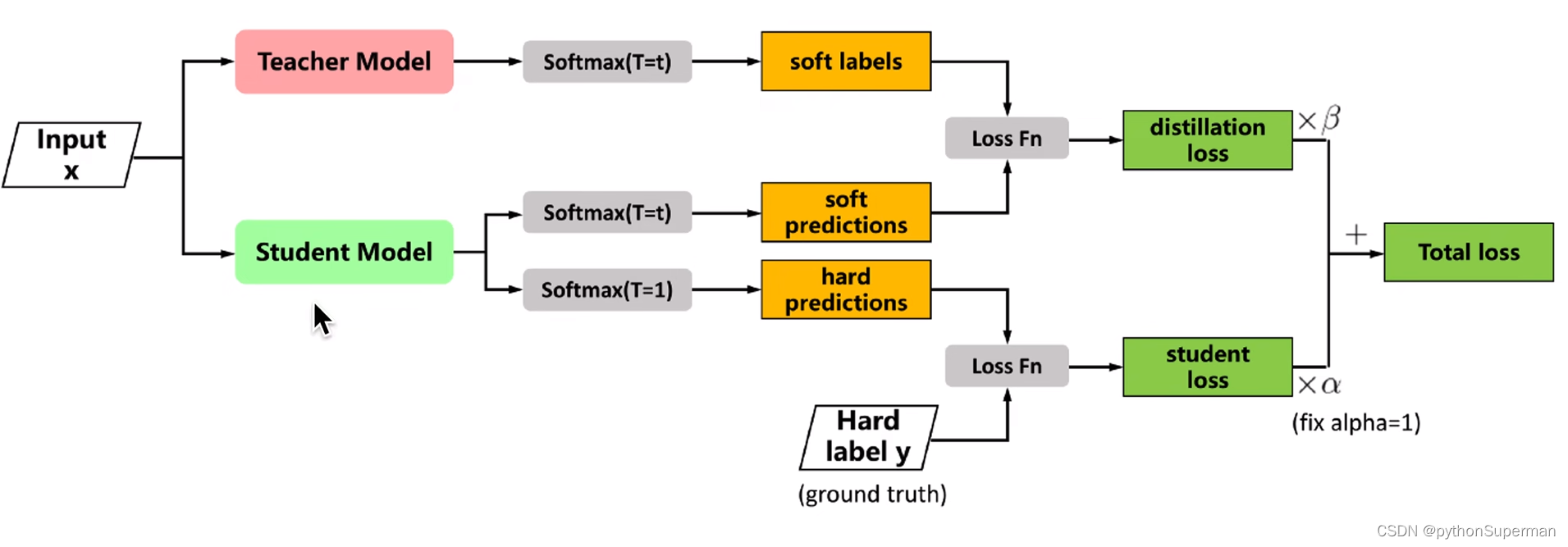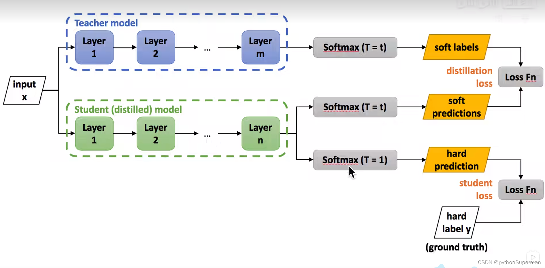 hard label y与hard prediction越接近越好,通过Loss Fn来实现,产生的数值叫做student loss,也叫hard loss。