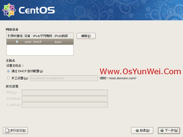 设置主机名字、IP地址等信息,这里默认下一步,等系统安装完成之后再设置