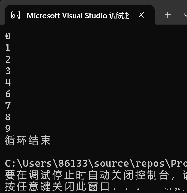 printf("循环结束\n");