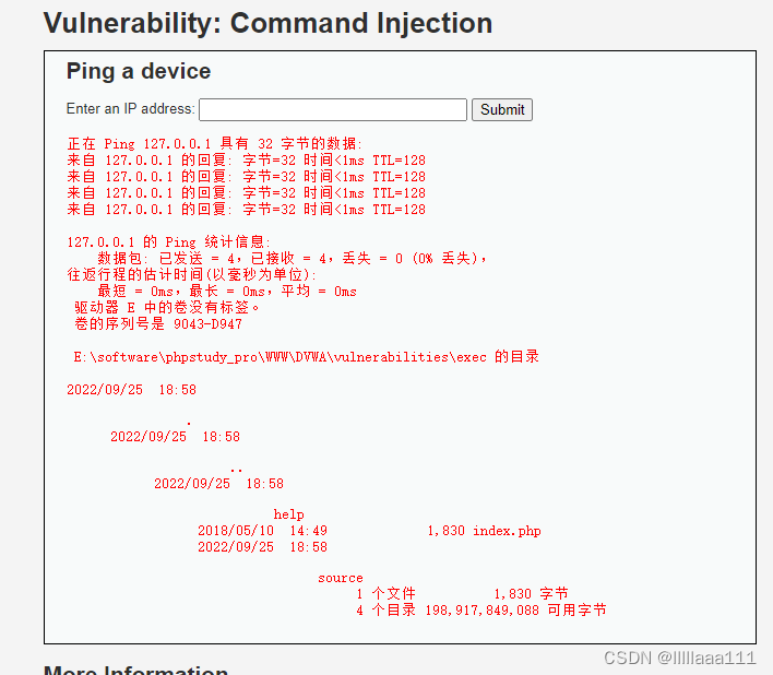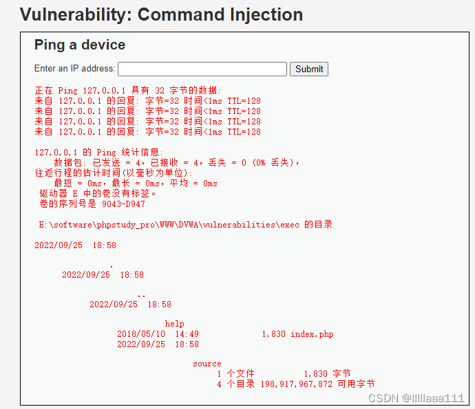 DVWA命令注入漏洞