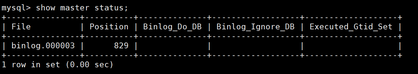 前面查看主服务器状态的时候让大家记录 File(binlog.000003) 和 Position(829) 的值,现在用上了: