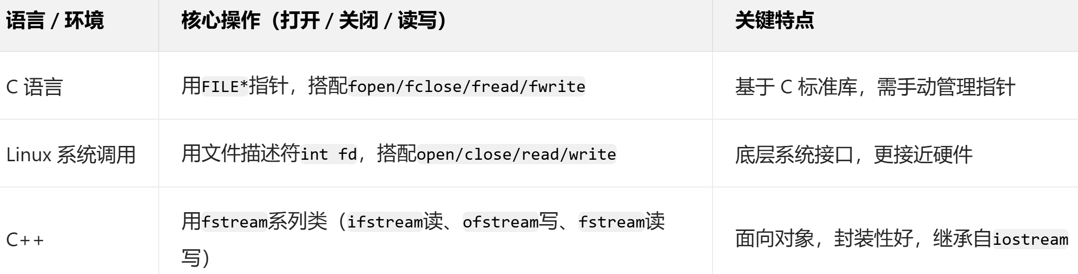 - 起始位置:ios::beg(文件开头)、ios::cur(当前位置)、ios::end(文件末尾)