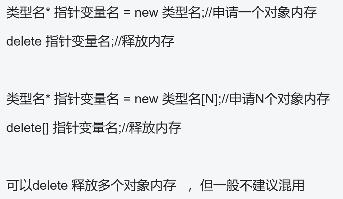 C++可以使用C语言的动态内存申请方式,malloc、free等。