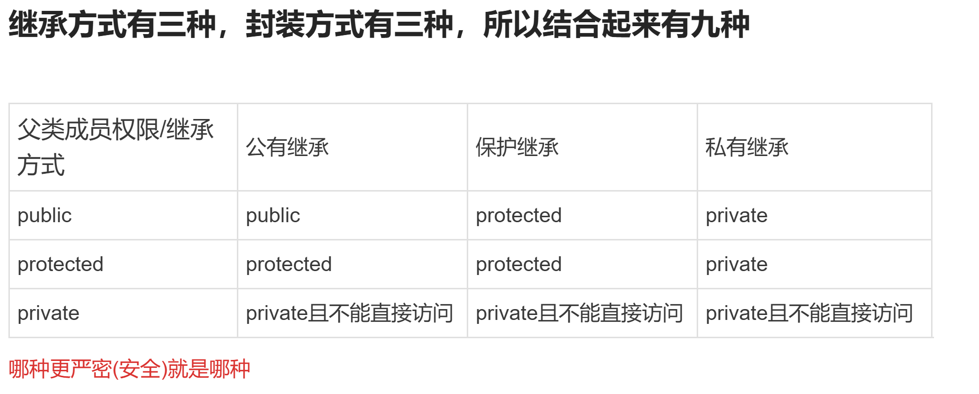 protected:声明下面的成员为保护成员(在类的内部可以直接访问,在派生类中也可以直接访问,但不能通过类的对象名在类外部访问),直到遇到下一个封装关键字为止。