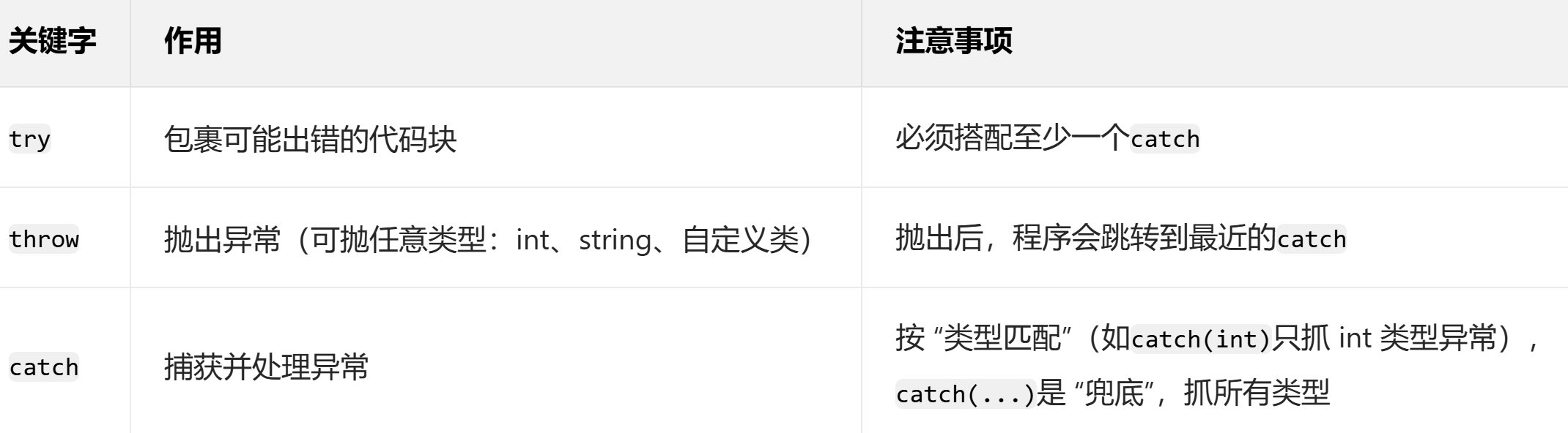 - out_of_range:访问容器越界(比如 vector [100] 但实际只有 5 个元素)。