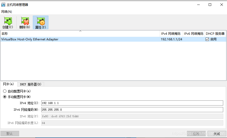 设置启用DHCP服务器,并设置服务器地址和主机以太网的192.168.1.7为一个网段。