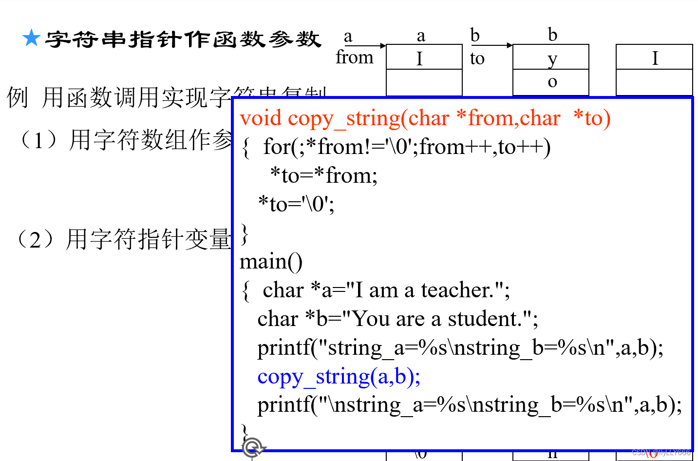 字符指针作为函数参数,举一个字符串拷贝的例子。