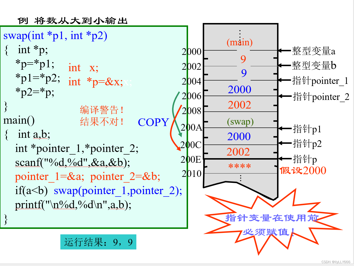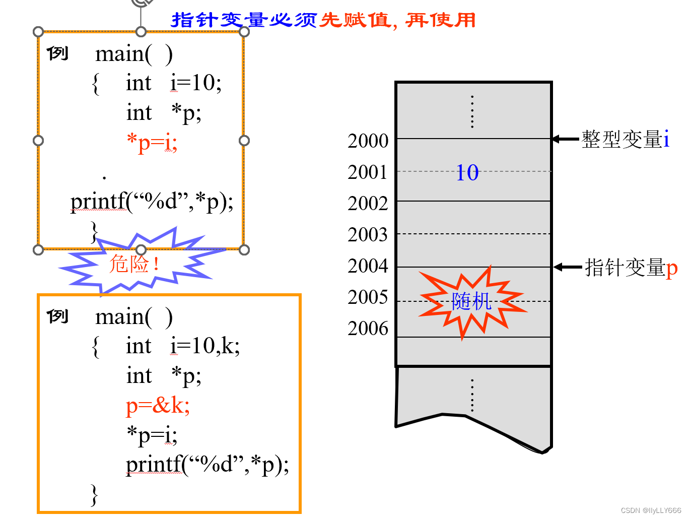 指针变量必须先赋值再使用。